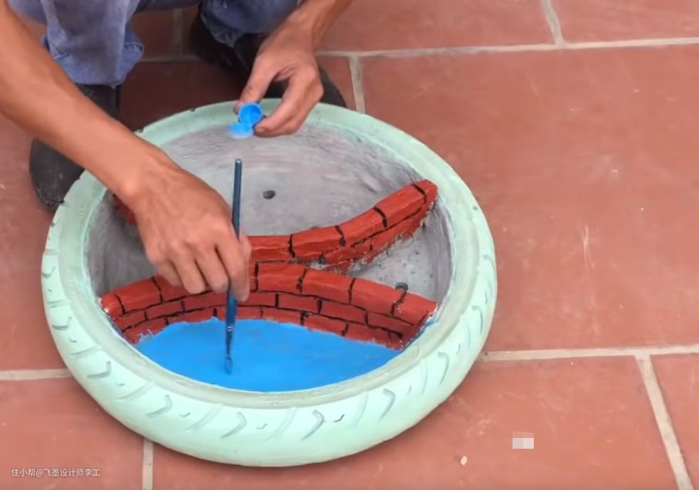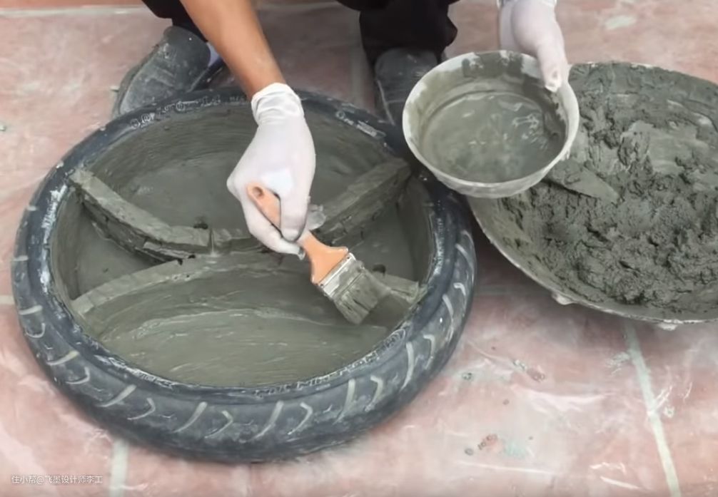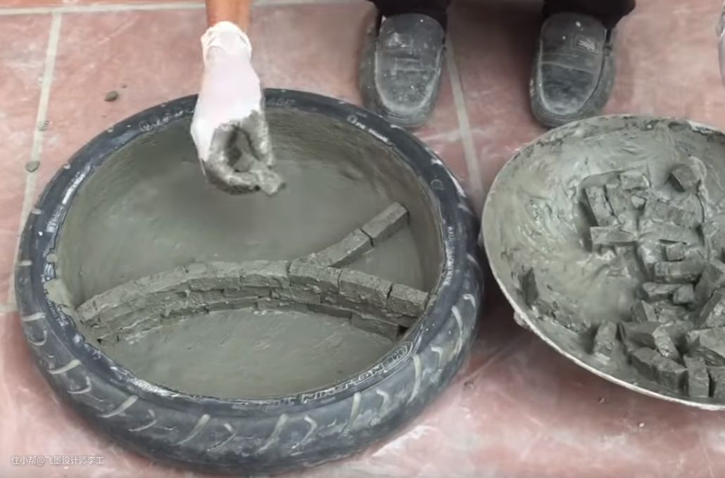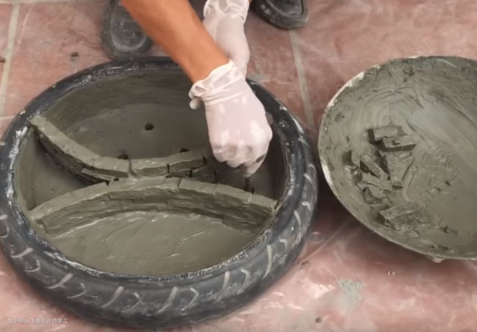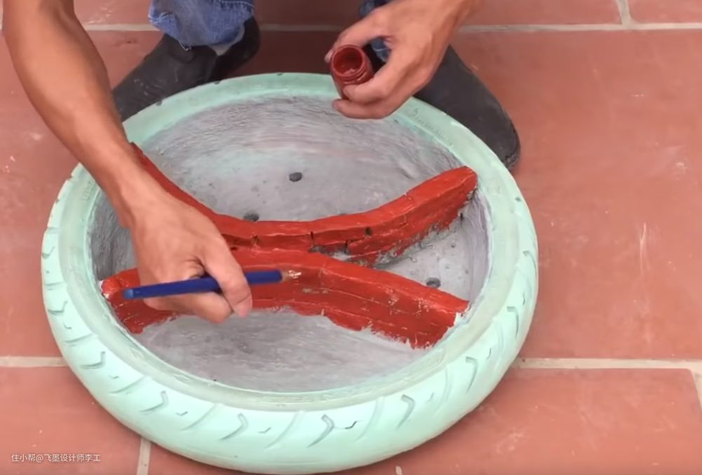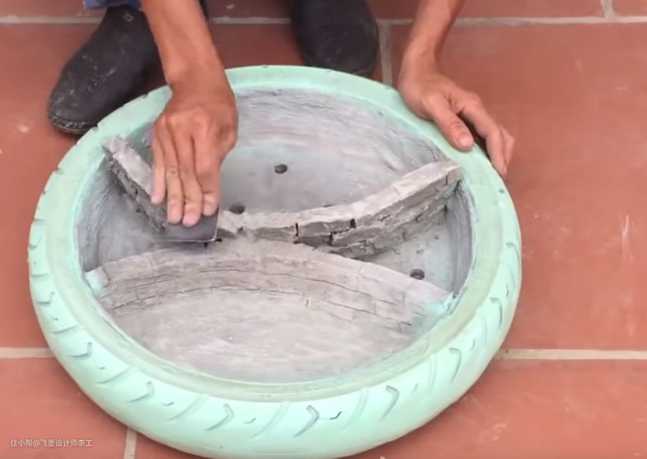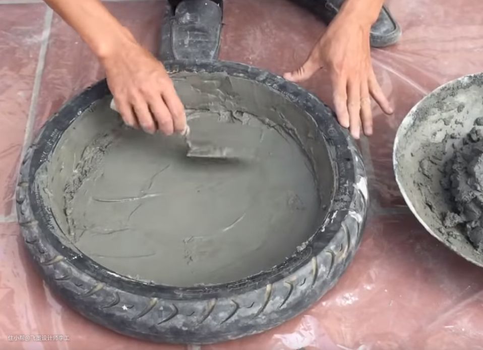 找来4个废旧小轮胎,用水泥砂浆浇个小花园,楼上邻居叫我再做个