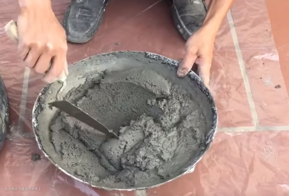 然后再利用水泥砂浆进行抹匀,再加上一层干的混凝土,利用小刷子将它刷匀。
