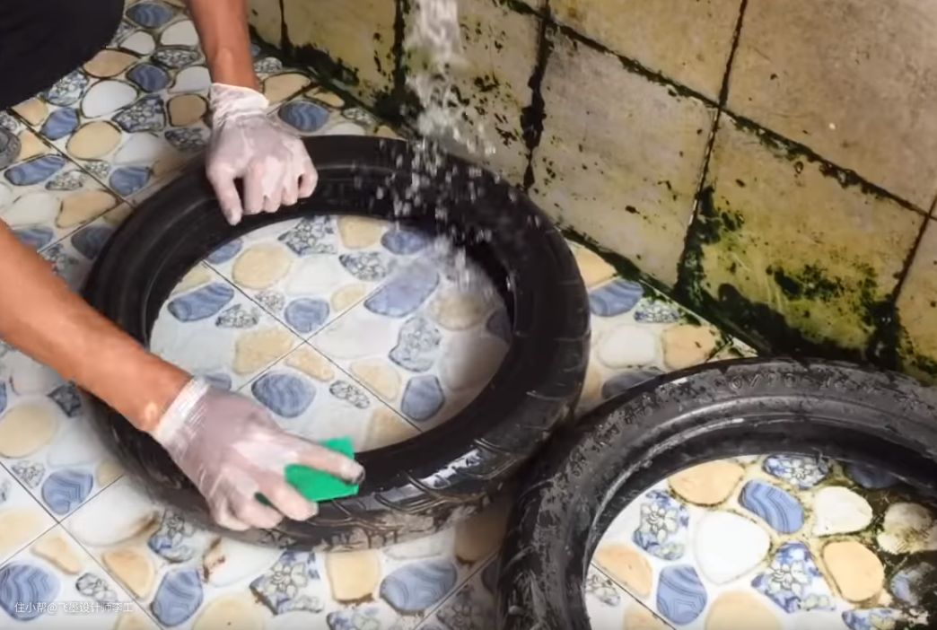 4:处理其他剩余的3个轮胎。先将它们冲洗干净。