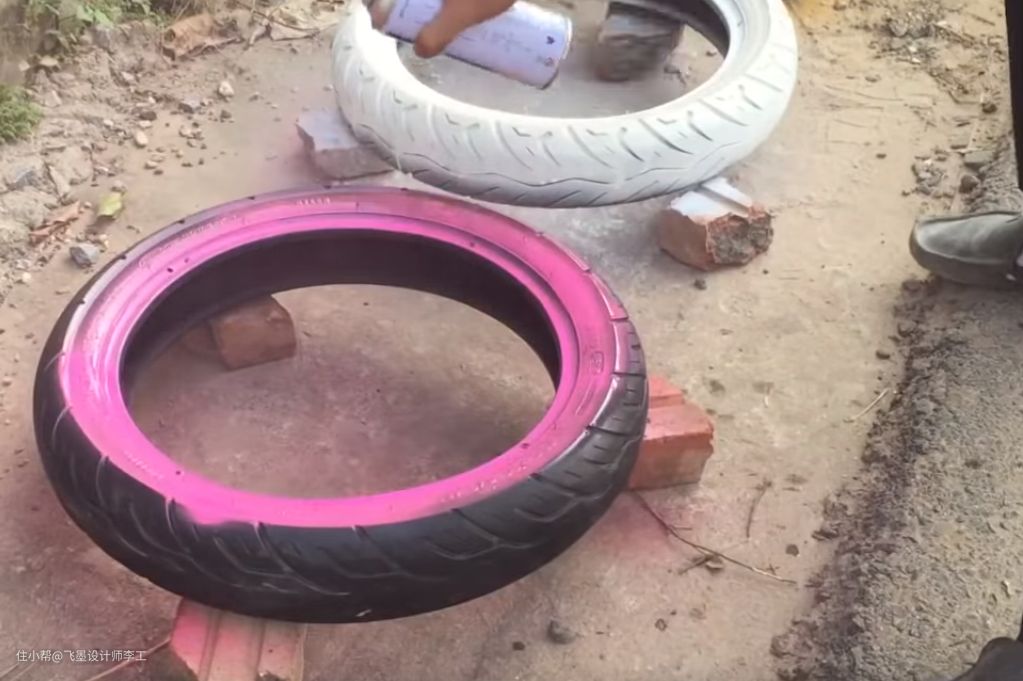 为了让轮胎颜值翻倍,喷上各种色调油漆。
