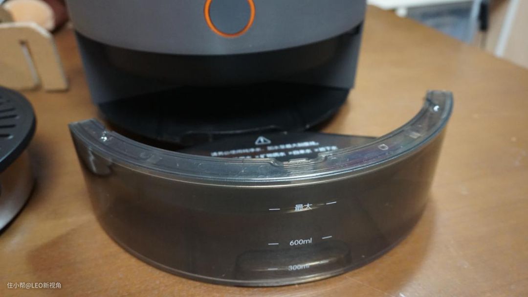 空气炸锅的锅可以拆下,烤架也是分离的,可以轻松取下来,底部是一个水箱,最大的储水量是1000ml,这里的水只有在原味蒸和蒸汽烤时会用到,空气炸时并不会用到水箱水。而实际使用后发现20分钟原味蒸,用掉的水量大概在150ml左右,用水量比想象中要少的多。