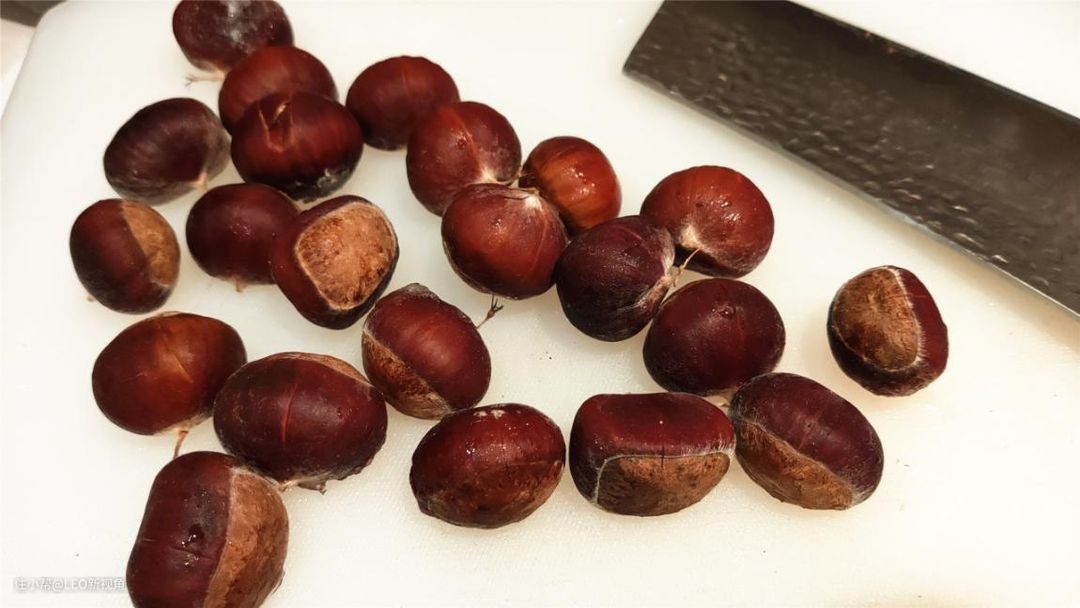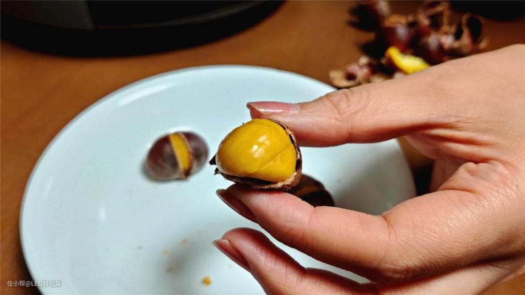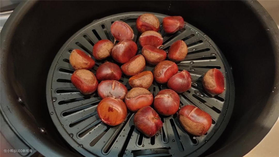 (如果要更快点,同样的切口,然后水烧开下板栗,煮3-5分钟,再沥干水分上空气炸锅烤,这样烤的时间可以缩短一半。)