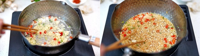 金银蒜蓉做法也简单,就是用油炒熟一半的蒜蓉,炸到金黄色,关火,放入另外一半的蒜蓉,加盐拌匀,最后吃辣的就放一点辣椒圈,不吃的不放