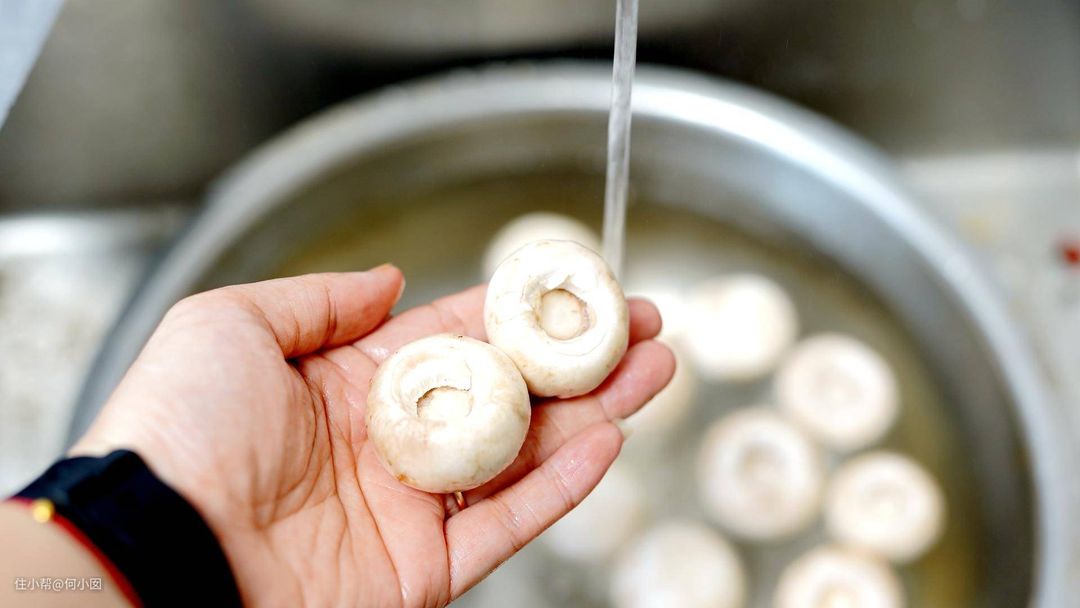 第一步去掉白蘑菇的蒂并清洗干净
