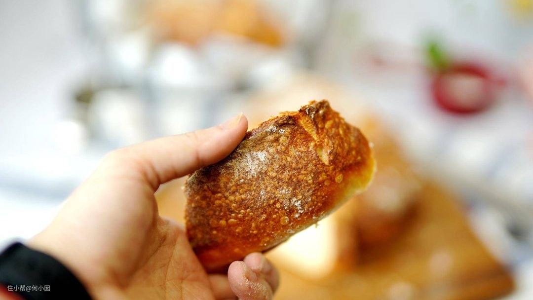 比如用高温加热石子,然后加开水,或者用烧热的铸铁锅加水的方式产生大量蒸汽,然后用高温烤,也可以做出欧包来,但是这几种方法都比较危险,容易被开水烫到也容易被突如其来的蒸汽灼伤,所以我也只用普通烤箱+石子做过一次欧包,后面都是依赖蒸烤箱了
