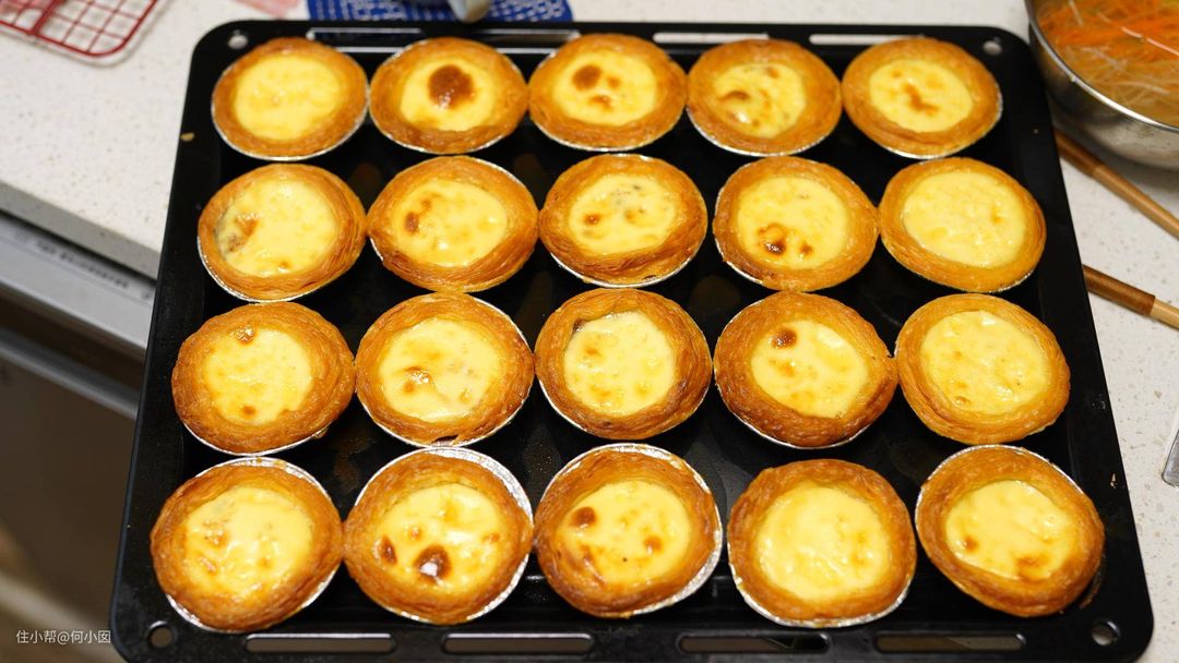 首先来烤一个蛋挞,蛋挞是烤箱最基本的运用了,上下烤185度左右
