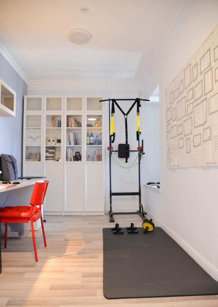 缺点:这种布局要注意动线问题,尤其是小户型,跑步机需要占空间,可以把跑步机放在靠边上,预留60cm的通道
