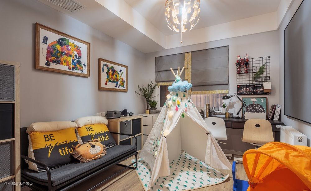 优点:每个人有自己相对独立的空间,找到自己喜欢的地方。让孩子在公共区域做作业效率更高,家长可以在客厅随时监督。