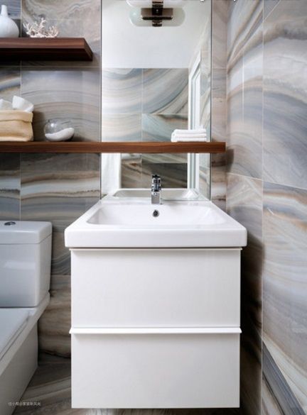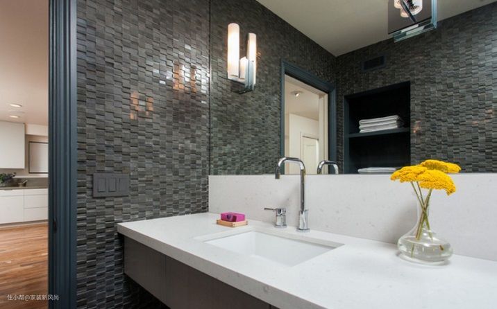 和厨房的思路相同,卫生间避免插座杂乱的方式也是将其置于不会自然被看到的一个角度。 在装修时,插座一般会置于盥洗池台面之上,但是你可以做出改变,将之安装到盥洗池下面边缘。这样既用起来方便,又不容易被看到。