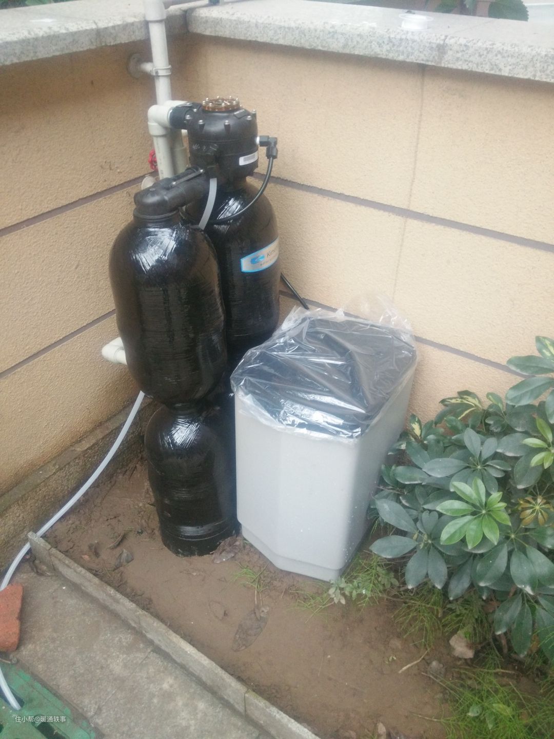 软水机完全靠的是水压来工作,没有储水桶所以软水机在使用增压泵时,是需要接通电源的。与中央净水机一样,它也有排污管,需要预留排污管道。但它又多了一个溢流水口,所以这里的排污管可能需要做的粗一些,保证排污管和溢流水管都能插进去。