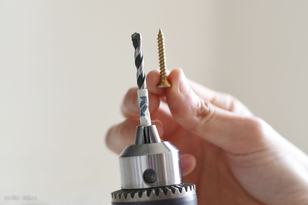 这点就很重要了,我在钻头下面缠了一圈美纹纸(胶带也可以),确保美纹纸上方钻头长度=钉子长度。