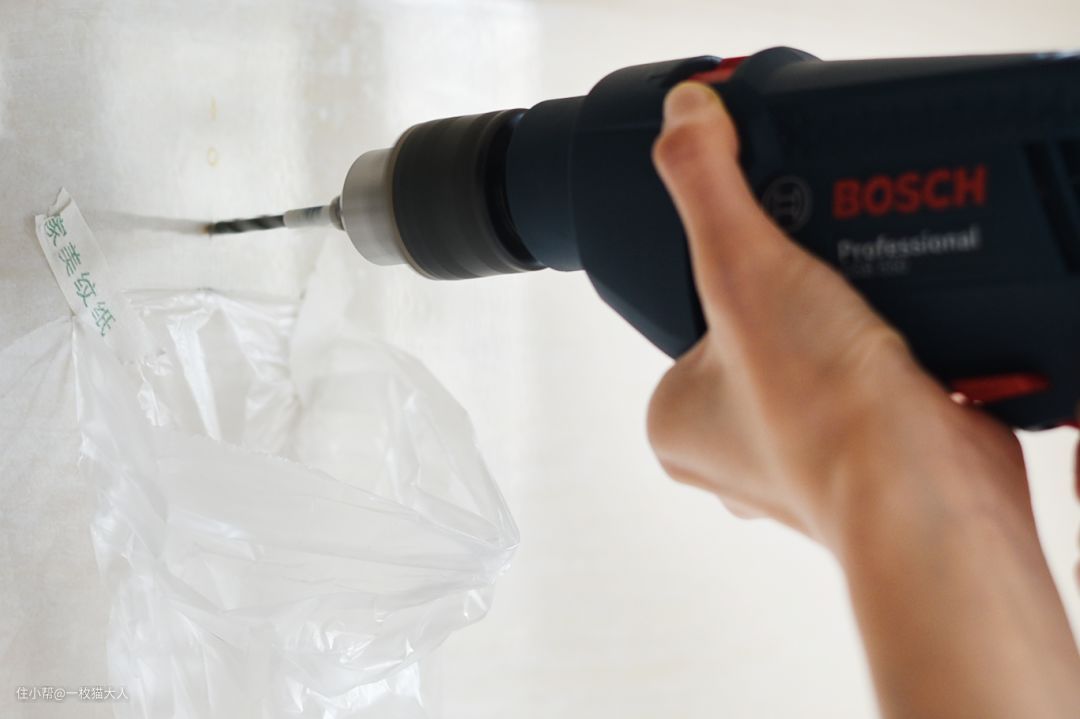 一个小妙招,在孔位下方贴上保鲜袋,打孔的灰尘灰直接落到袋子里,不会弄到厨房台面上。