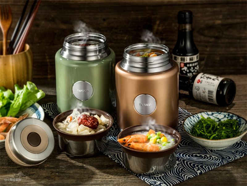 当然如果你总是带粥或者汤饭的话,可以选择保温桶,保温桶上一般都会带着小碗儿,喝汤的时候直接将桶里的汤倒进碗里,这样也不会尴尬。