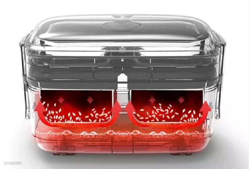在给这款饭盒里的食物加热的时候,可以将粥类或者汤类放到饭盒的下层,将米饭和蔬菜放到饭盒的上层,这样能是食物充分预热,口味更好。