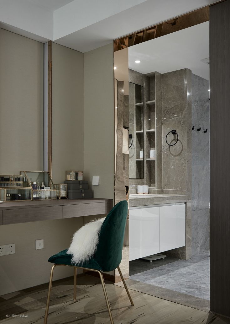 家具取舍原则:如果希望卫生间舒适度更好,卫生间面积至少需要5平米以上,可以有浴缸泡澡,那么就需要向衣帽间等空间借用取舍。相反如果希望拥有一个大大的衣帽间,可以纳入梳妆台和健身器材,那么对应的卫生间就要相对舍弃部分空间。