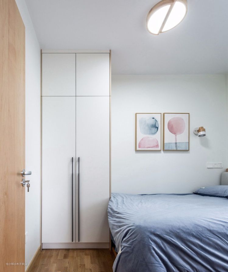 缺点:床和衣柜都不能做太大,尺寸要把握好,不然容易出现压抑感。10㎡的卧室床建议1.2米,床高度30cm,再加床垫50-60cm,这种小卧室一般使用的是老人或者儿童,这个尺寸高度适中适合老人小孩。衣柜深度建议52-62cm,这个规格高度合适好用,高度可以根据房屋情况定制。