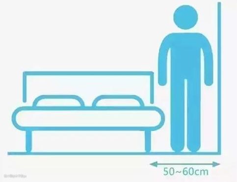 尺寸注意事项:床建议购买1.5米以上,床的两侧应有至少50cm的空间,既能放置床头柜,又能方便家人上下床和整理床铺等活动。1500mm的床放500mm左右的床头柜,高度略低于床面就是最合适的。