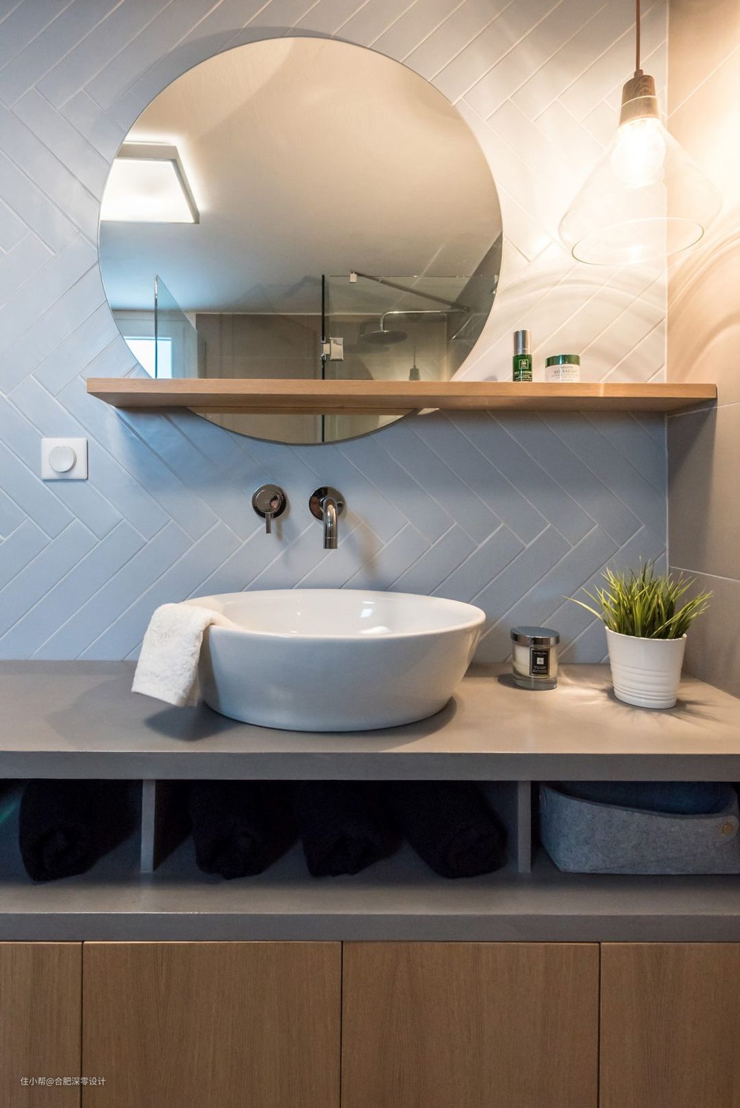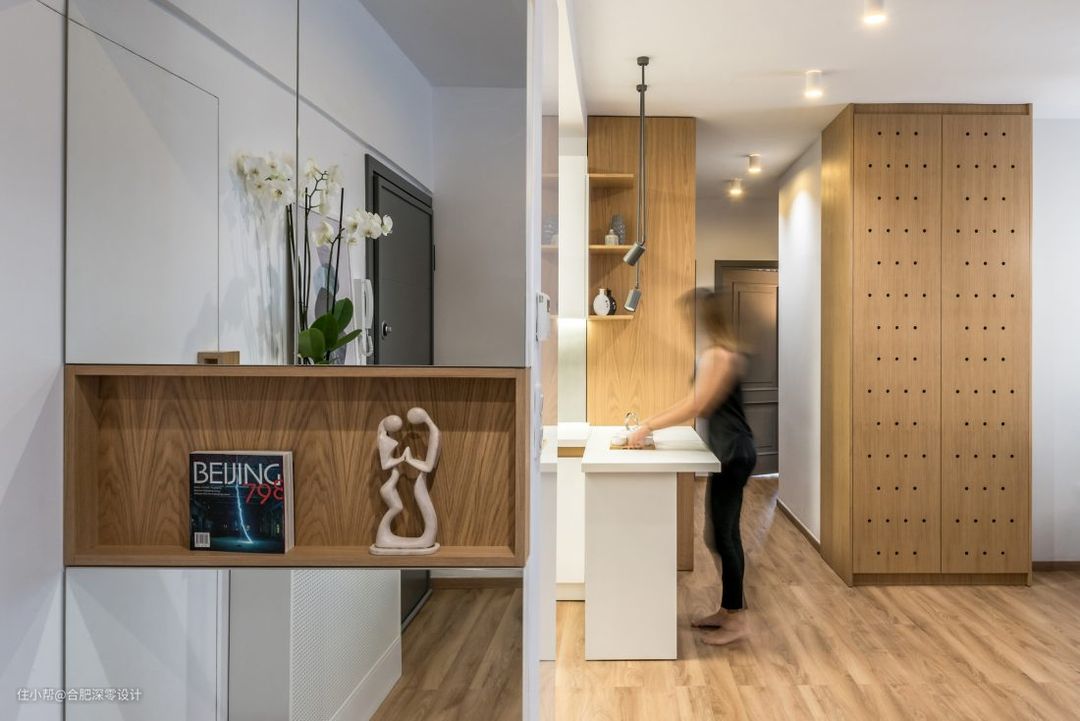 小户型本身空间就小,为了满足基本的收纳需求,如果到处打柜子势必会影响到家里的宽敞与采光,所以不如跟下面这位业主学学,打一个柜子,然后再从拐角、从柜门各个角度"偷空间",让只有75㎡的家收纳空间原地翻倍。