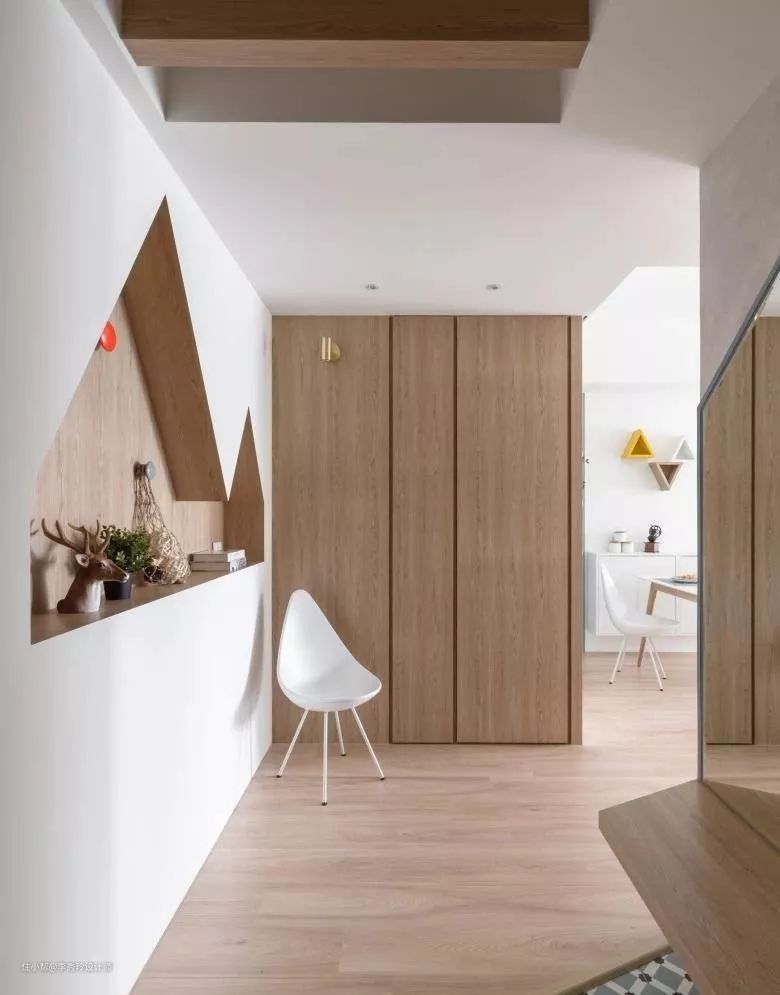 如果空间充裕,完全可以做成储物柜,既可以满足更多的收纳需求,又可以巧妙地化解入户门正对卫生间门的难题。