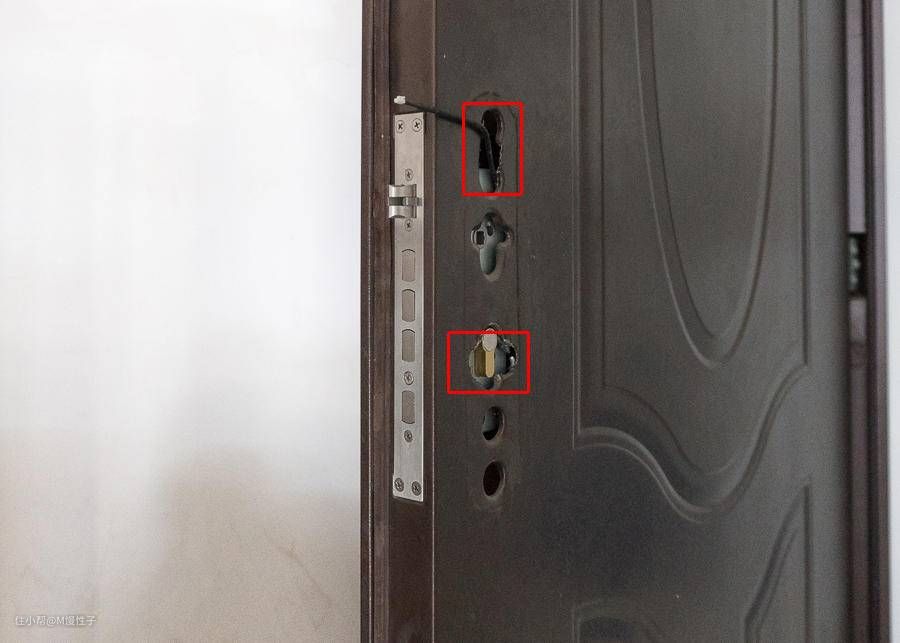 ▼基本顺序是 锁体安装,内外把手安装,以及门扣条安装。