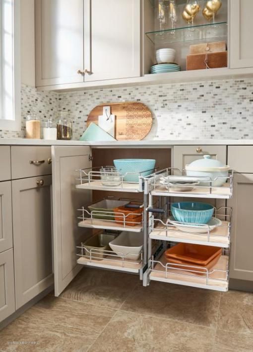 橱柜转角这样装太聪明了,旋转拉篮抽出来收纳,邻居吵着要回家换