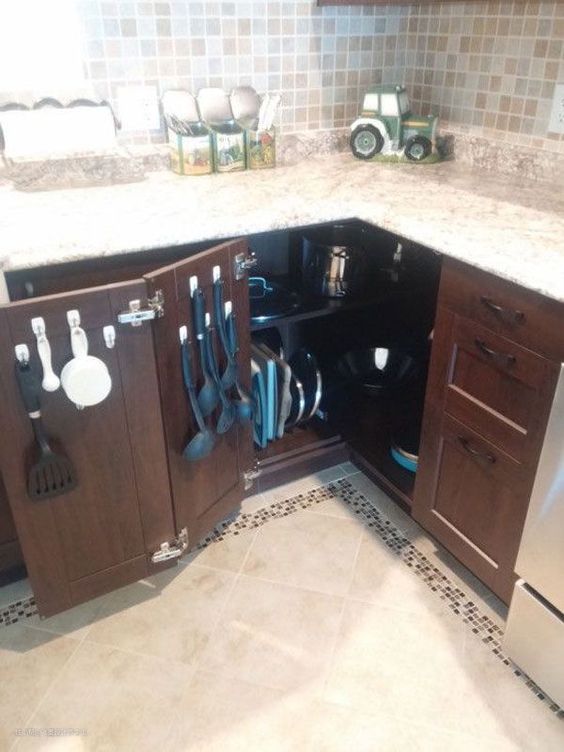 厨房转角位置比较尴尬,正常安装柜门不方便平时使用,但是只要将柜门或内部空间稍稍改造,鸡肋转角也有大用处!准备装修的朋友们可以参考下。