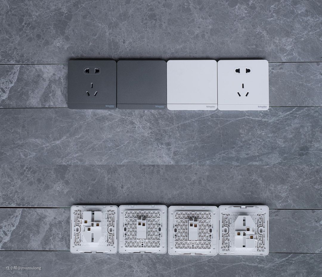 值得注意的是施耐德开关和插座都保持了9.9的厚度,这也是内凹设计所带来的好处。