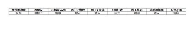注:下文的款式出现顺序如没有特殊标注就是以表格顺序为准。