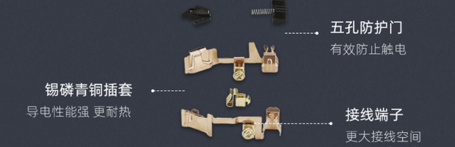 3.另外内部材质的用量更多的与相关设计和结构相关,不同的机构和间距都对应不同的材料用量,正规厂商生产的产品无论接触件还是载流件肯定都达标,各家给出的标准基本都是插座250V/10A、开关250V/16A。