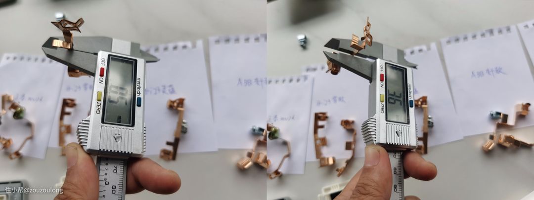 这里我使用的卡尺由于只能精准到0.1mm,测量的时候都是尽量用手指顶住查看数值保持统一,不过数据必然有一定得偏差,仅作为对比参考。