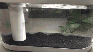 ▲这款鱼缸比较有特色,也是吸引我买的一个亮点,就是这里有一个虹吸小花盆,可以种点小绿植,上面养花,下面养鱼,想想就舒服啊。真不负两栖鱼缸的名字呢。