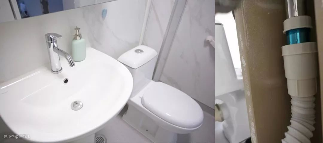 以前柱盆特别容易返味,因为排水管没什么空间做S型存水弯,这次洁具换新中我们的柱盆排水管也是新型带水封防臭的,这样柱盆下水返味的问题也解决啦~