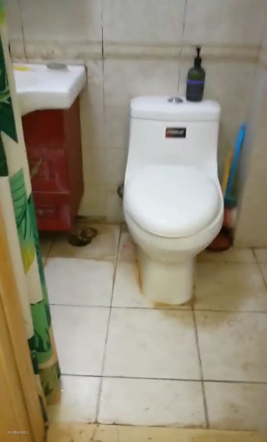 郑姐收到房子以后马上给我们拍了视频发过来,我们一看,恩!是比较老旧的卫生间啦!户型是典型的80年代老破小,卫生间面积实测只有2.2平米。