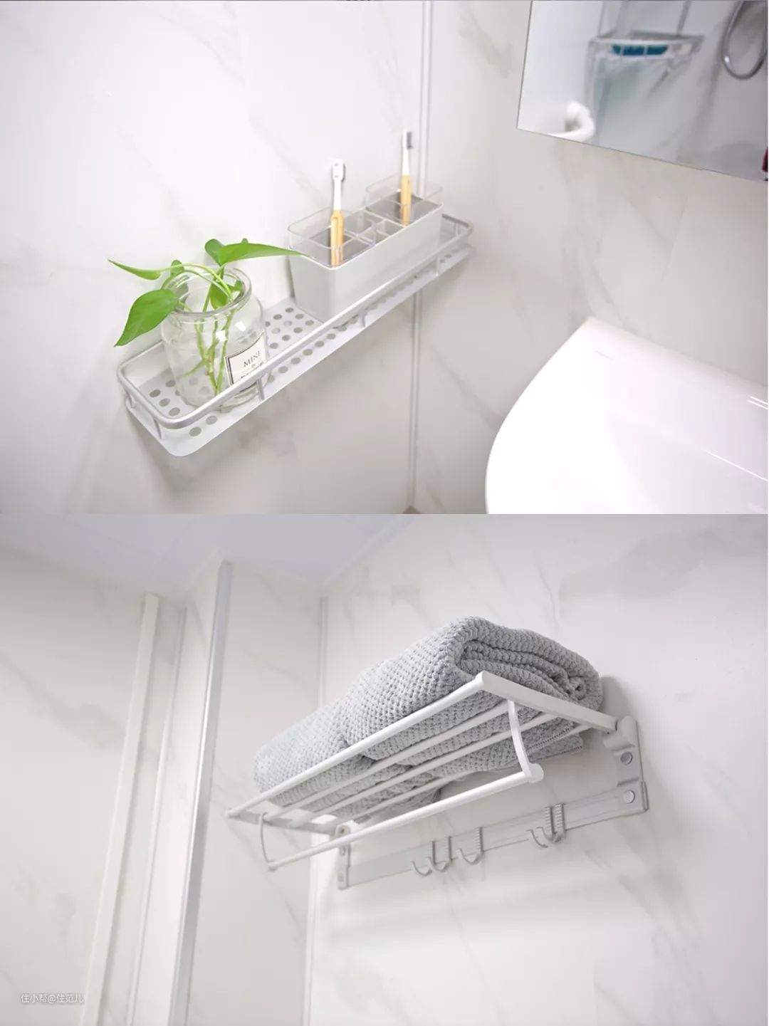 另外我们附赠了五金挂件四件套,方便在卫生间内多种置物取用,同时尺寸合适不会阻碍在卫生间的行动。