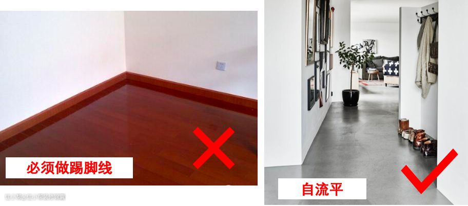 错误原因:踢脚线的作用是为了给地板留出伸缩变形的空间,那如果用其他方式可以解决这个问题,踢脚线也是可以被替代的。
