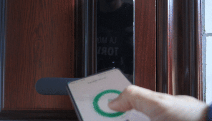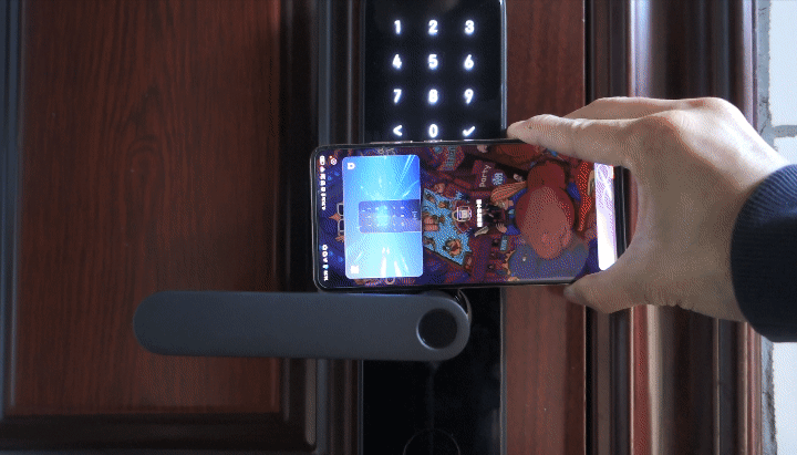 如今NFC功能的用处越来越广,不少手机和手环都内置了NFC功能。Aqara N100也支持使用小米/红米手机以及小米手环的NFC开锁功能。如果你出去购物双手拎满了东西,又拿着手机,不太方便使用指纹解锁。这时只要将手环或者手机靠近前面板的NFC识别区域,就像刷公交卡一样,就可以实现验证开锁了。注意不要将设备直接贴到NFC识别区域上,这样是识别不出来的,保持很短的距离靠近这个区域就好了。Aqara N100采用的是安全等级比较高的NFC芯片,也不用担心NFC卡信息被复制盗开的问题。
