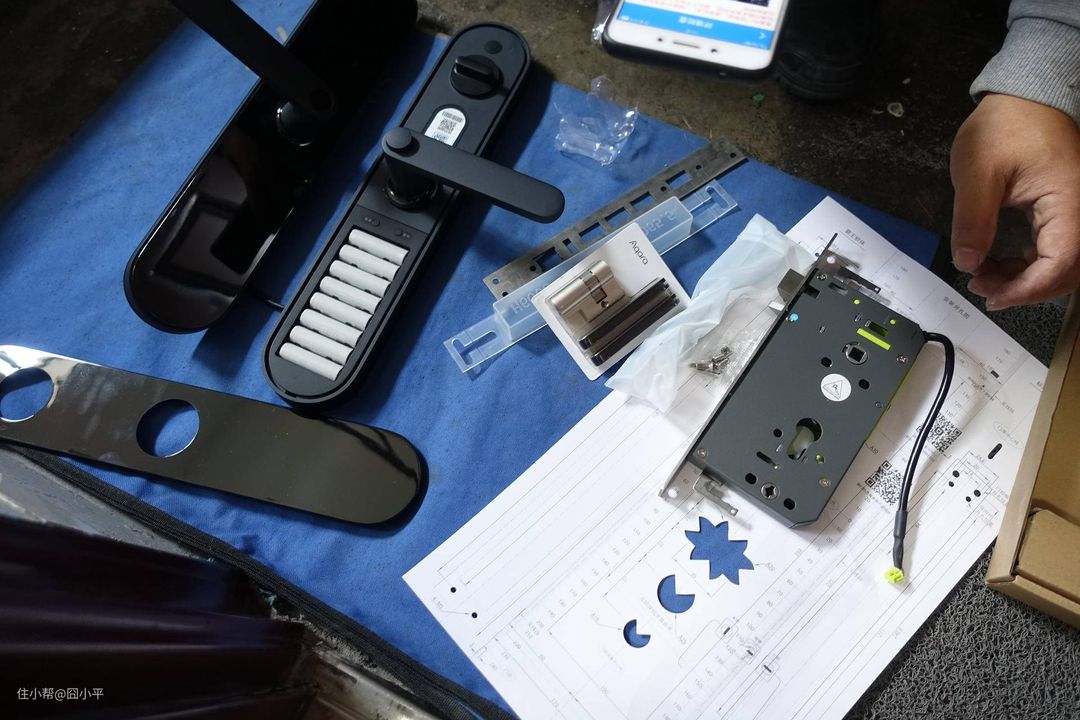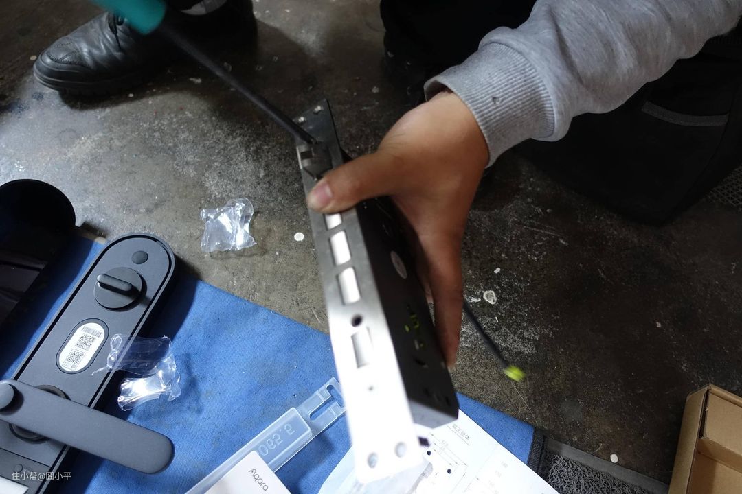 安装也是智能门锁体验的一个重要环节,安装了霸王锁体的用户在选购智能门锁的时候就会受到很大的限制。Aqara N100暂时也是不支持霸王锁体的,或许以后会支持也说不定,但是价格应该会比常规锁体高一些。Aqara N100的安装条件还算宽裕,6068标准锁体都是可以安装的,部分需要对门进行改造,左开门右开门可以自行调节。具体安装条件可以在购买前跟客服确认。Aqara 智能门锁的安装是由匠云负责的,门锁购买后即使你不预约,也会有安装师傅主动联系你确认安装时间。我平时要上班没有时间监工,所以就把安装时间定在了周日上午。安装师傅也在预定的时间内准时到达,直接摆开工具,就准备开工了。