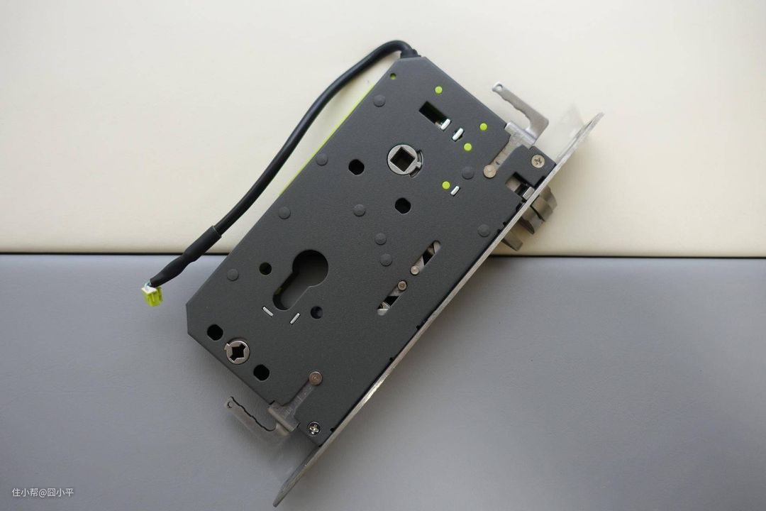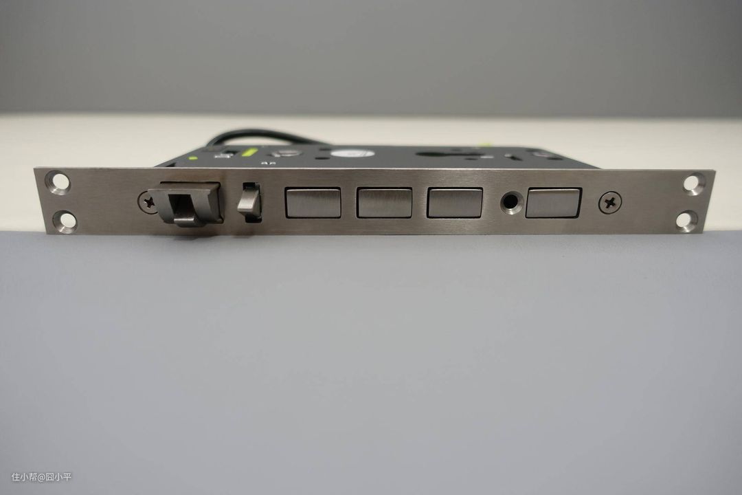 Aqara N100的锁体采用不锈钢材质,拿在手里沉甸甸的。锁体支持天地勾,虽然我应该不会使用天地勾。驱动锁体机械运动的离合器被置于锁体内部,进一步加强了门锁的安全系数。