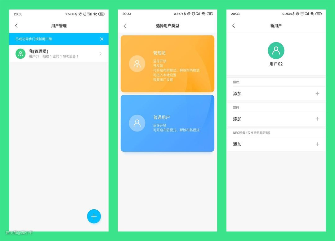 在米家App中,可以进行用户管理,添加删除新的用户,并设置指纹、密码、NFC等开锁方式。
