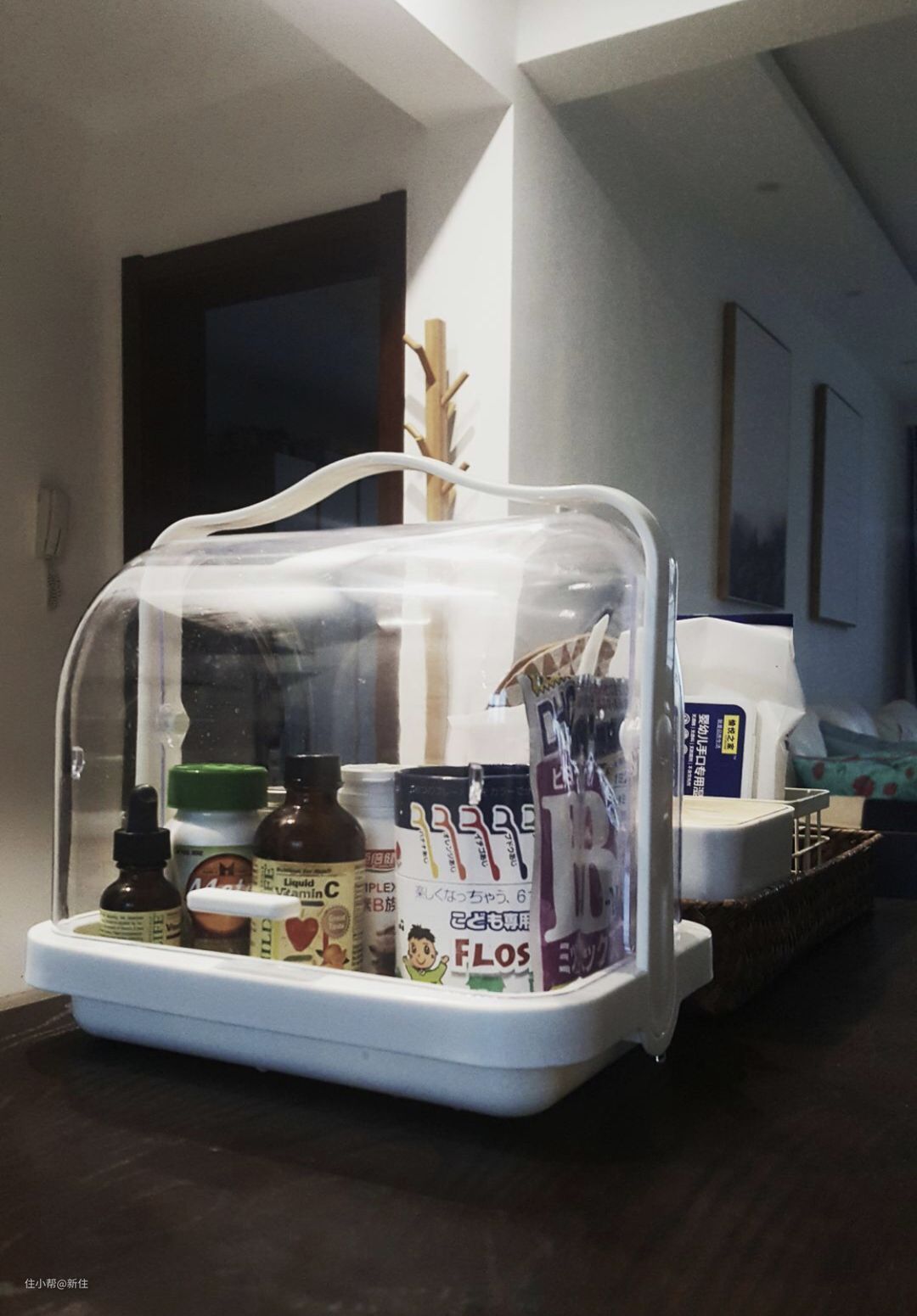 除了收纳化妆品,收纳盒里还可以用来存放容易受潮的调料,果酱、吐司、小朋友的奶瓶,除此之外还可以用来收纳全家的药品。