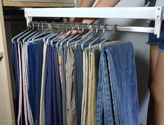 抽拉裤架也是最近几年裤子收纳实用又流行的方法,收纳量大又方便拿取,对于不爱整理衣柜的懒人来说绝对是非常棒的体验。