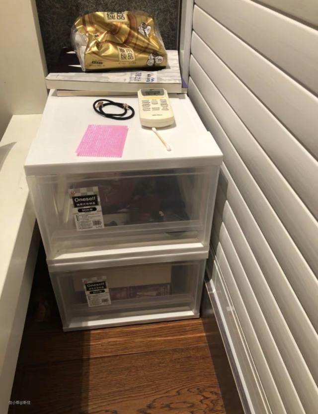 床头空间太小,找两个合适尺寸的抽屉式收纳盒摞起来,放在床边,就变成了一个床头柜