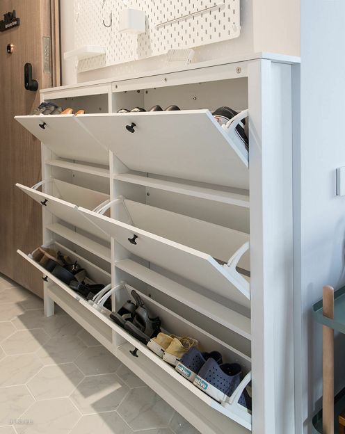 宜家翻斗鞋柜,最常见的就是放在玄关收纳鞋子,特别适合狭窄小玄关。