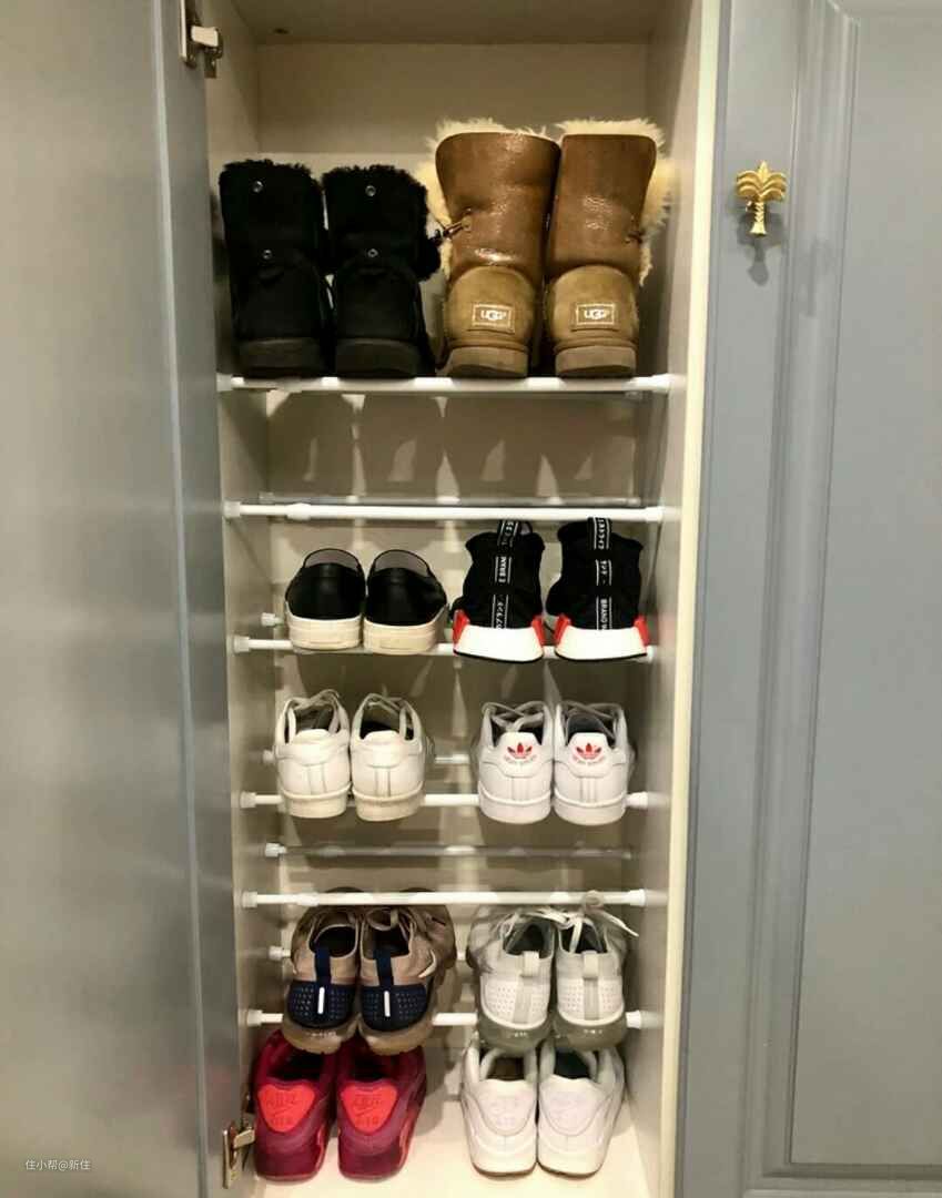 鞋柜内用伸缩隔板,收纳秋冬的鞋子十分友好,长靴终于可以放进柜子里,收纳量成倍增加。