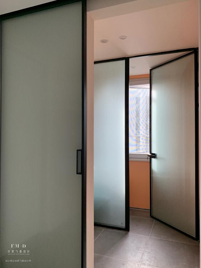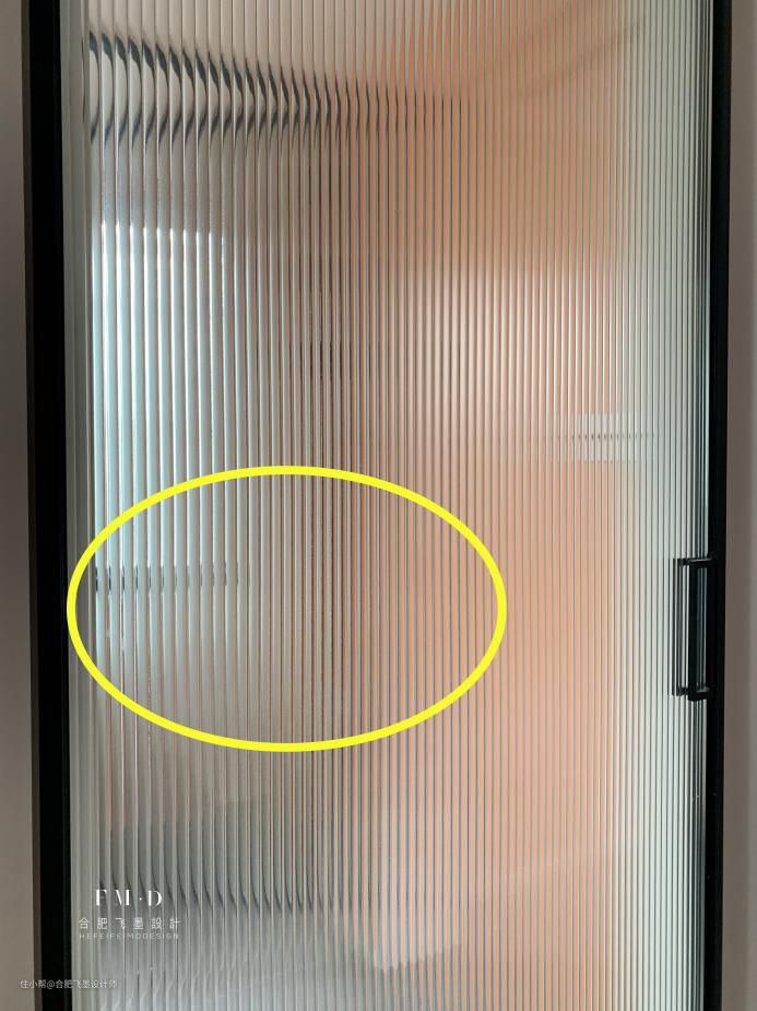 长虹玻璃的压花是竖纹的,所以一条条竖行花纹,与顶面相连,具有拔高层高的效果,透光不透明的特性也开阔了整个空间。