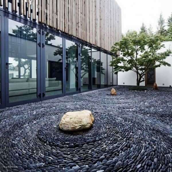日本的文化受中国传统文化的影响很深,可以说是中国庭院的缩小版,细节上的处理是日式庭院精彩的地方。此外,由于日本是一个岛国,这一地理特征形成了它独特的自然景观,较为单纯和凝练。日式庭院非常注重地面的装饰,在空旷的砾石堆里开辟一条弯弯曲曲的不规则石径则预示着艰难的人生之路。