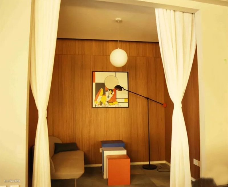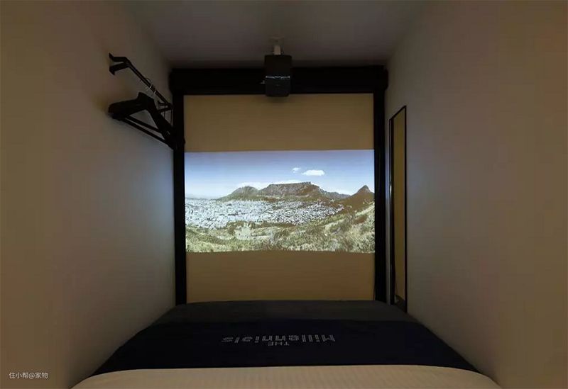 胶囊房空间小,对于有幽闭恐惧症的小伙伴来说,这简直就是一种折磨,为了解决这个尴尬,有条件的话可以在床尾处打造一个天窗,或者是挂一幅3D立体图,视野上会给人一种很开阔的感觉。