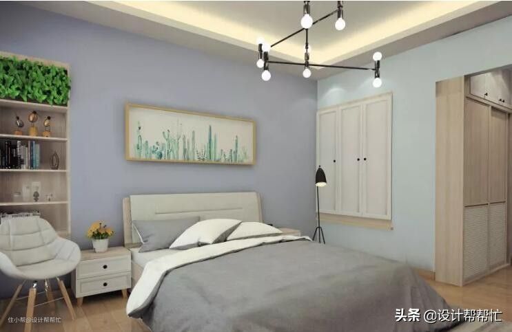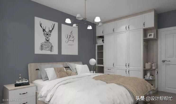• 60%的灰蓝色营造卧室宁静温馨氛围。