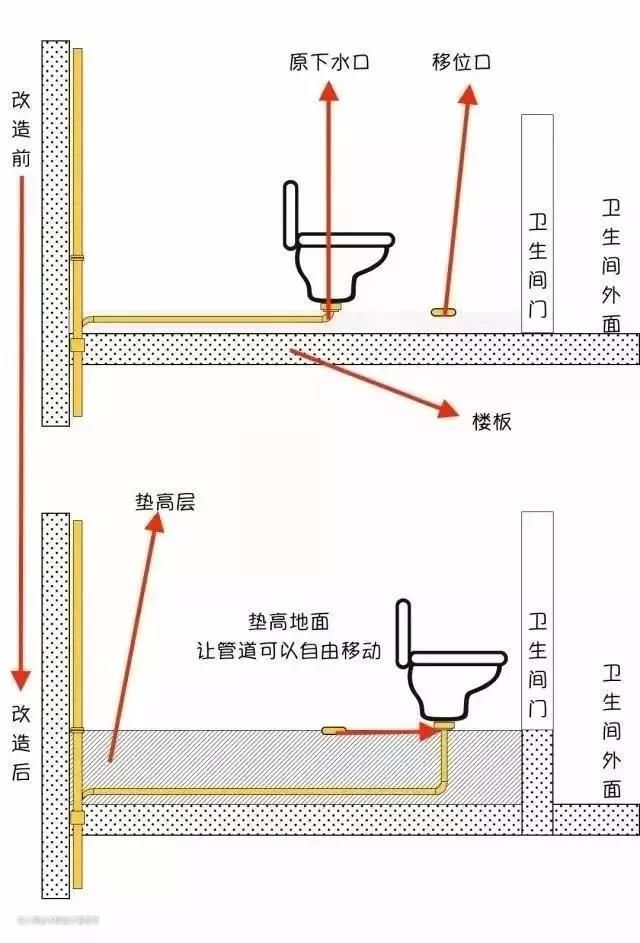 顾名思义,就是通过加高卫生间的地面,实现马桶移位的目的!