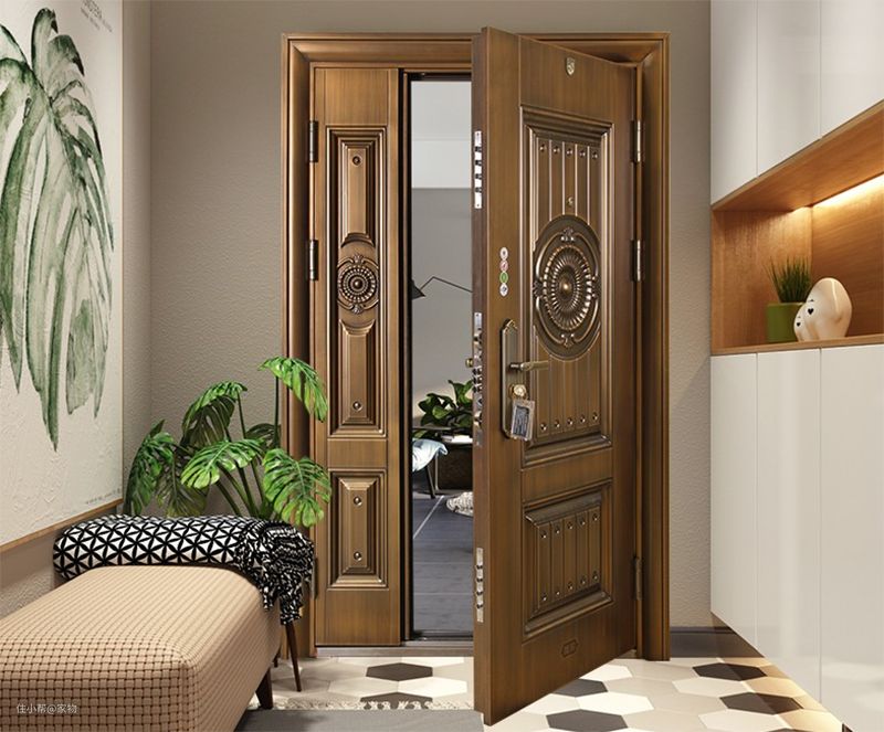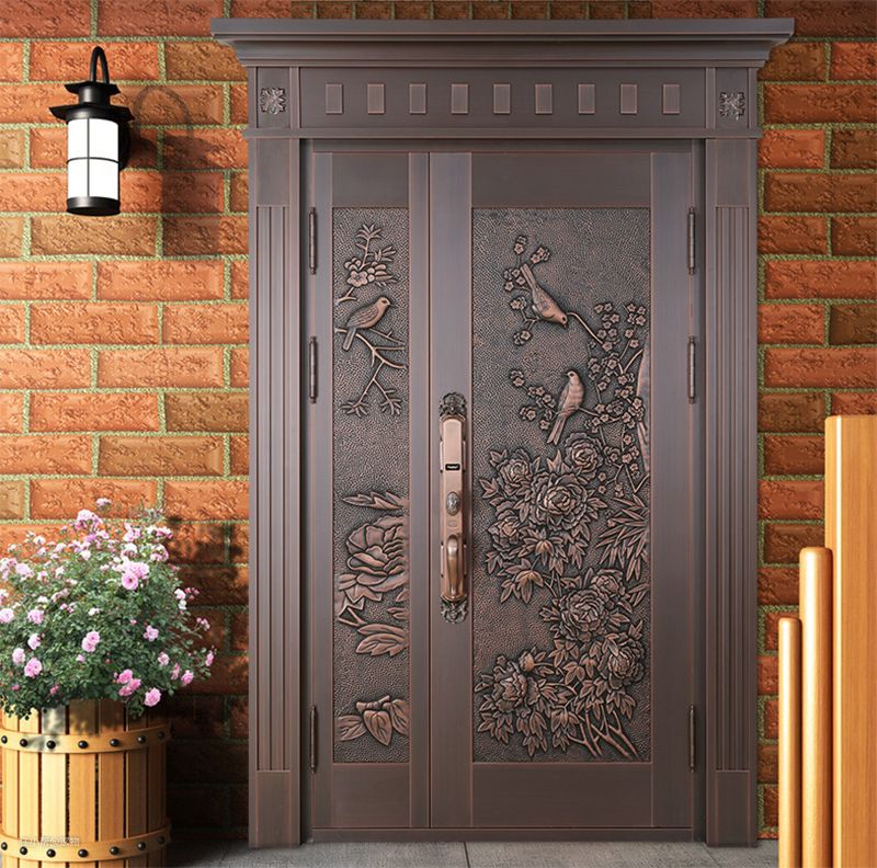 铜制防盗门也被很多家庭使用,一般都会搭配着入户门使用,双重保障给家人提供更安全的环境,为了不显单调,门扇上一般都会印有花纹,给人一种和高级的感觉。